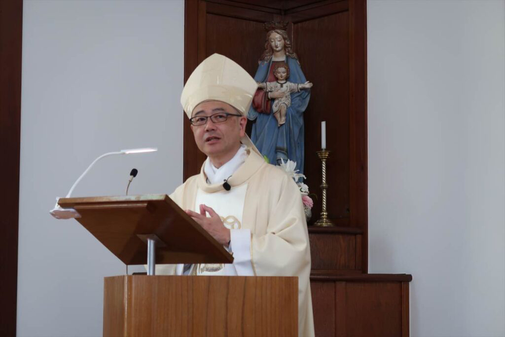 司教は説教で、マグダラのマリアの復活体験にふれ、続いて昨年の復活の月曜日(2025年4月21日)にフランシスコ教皇が88歳で神様のみもとに旅立たれた前日、バチカンのミサで行った説教を紹介した。