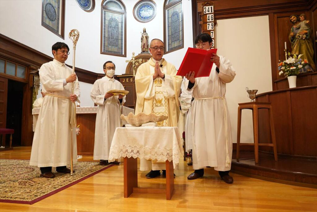 ことばの典礼では3つの旧約のうち、出エジプト記がベトナムの青年によって語られ、答唱詩編もベトナム語で歌われた。洗礼式はなかったが、水の祝福と洗礼の約束の更新が行われた。